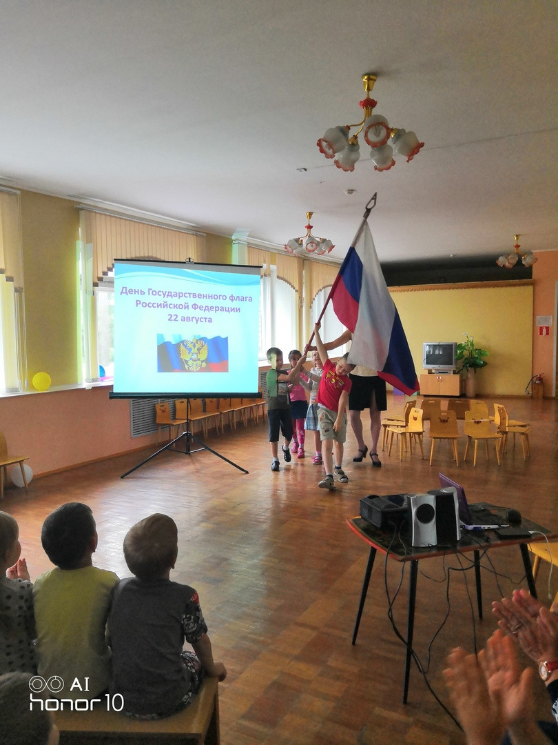 Под звучание песни “Россия” воспитанники подготовительной группы торжественно внесли флаг России, с большой гордостью прослушали гимн нашей страны. Педагоги организовали подвижные игры, где дошколята продемонстрировали свою спортивную подготовку и доказали, что растут достойной сменой.