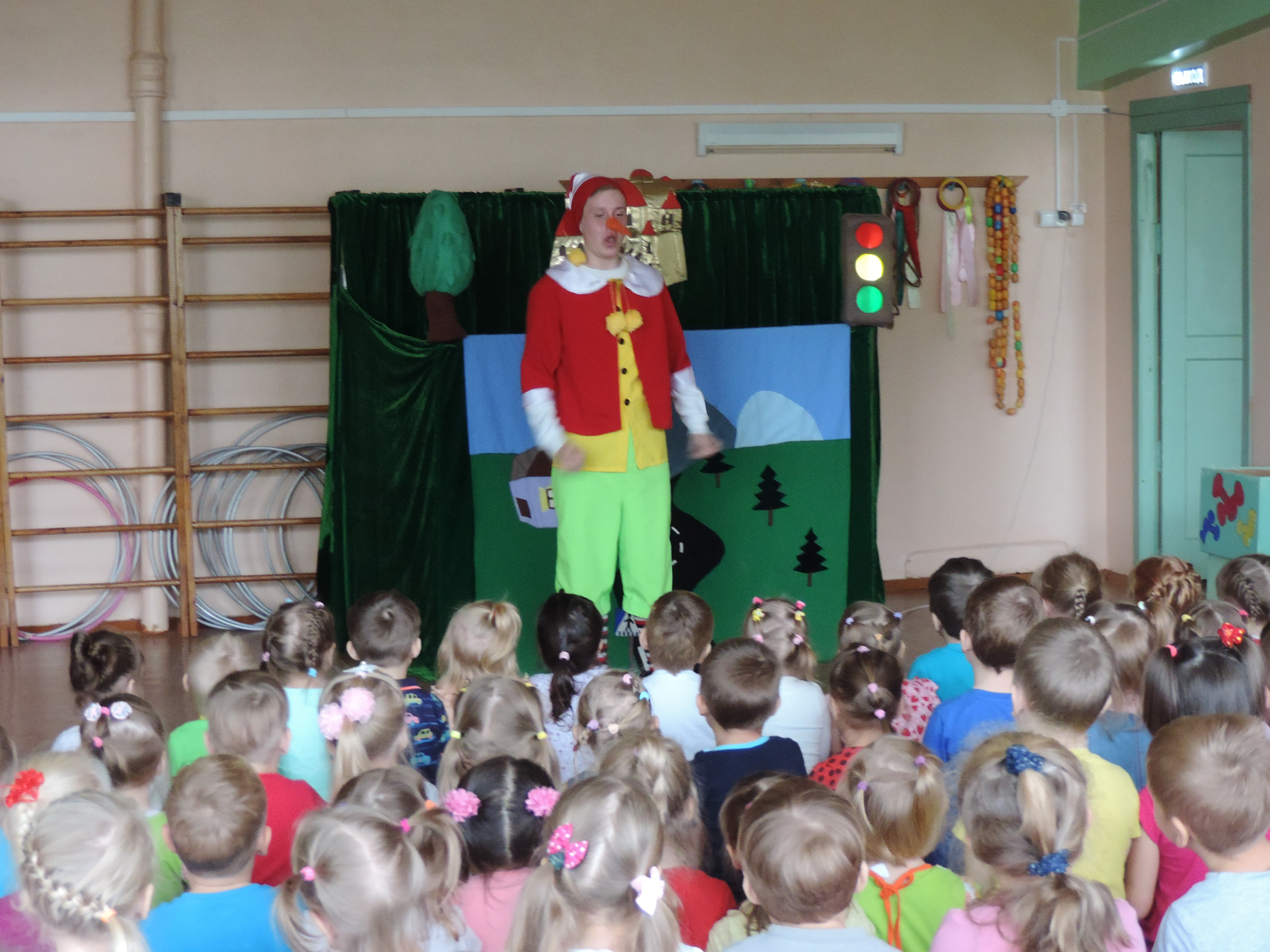 Систематическая работа по закреплению знаний у воспитанников детского сада о правилах дорожного движения продолжается. 27 сентября состоялся спектакль «Приключения Буратино», в ходе которого дети не только общались с героями знакомого произведения, но и повторяли важные правила дорожного движения. В ходе увлекательного путешествия по страницам знакомого произведения А.Н.Толстого «Приключения Буратино» дети закрепляли знания о значениях основных цветов светофора, о правилах перехода проезжей части, о правилах езды на велосипеде. Театральное представление было не только увлекательным, но и познавательным!