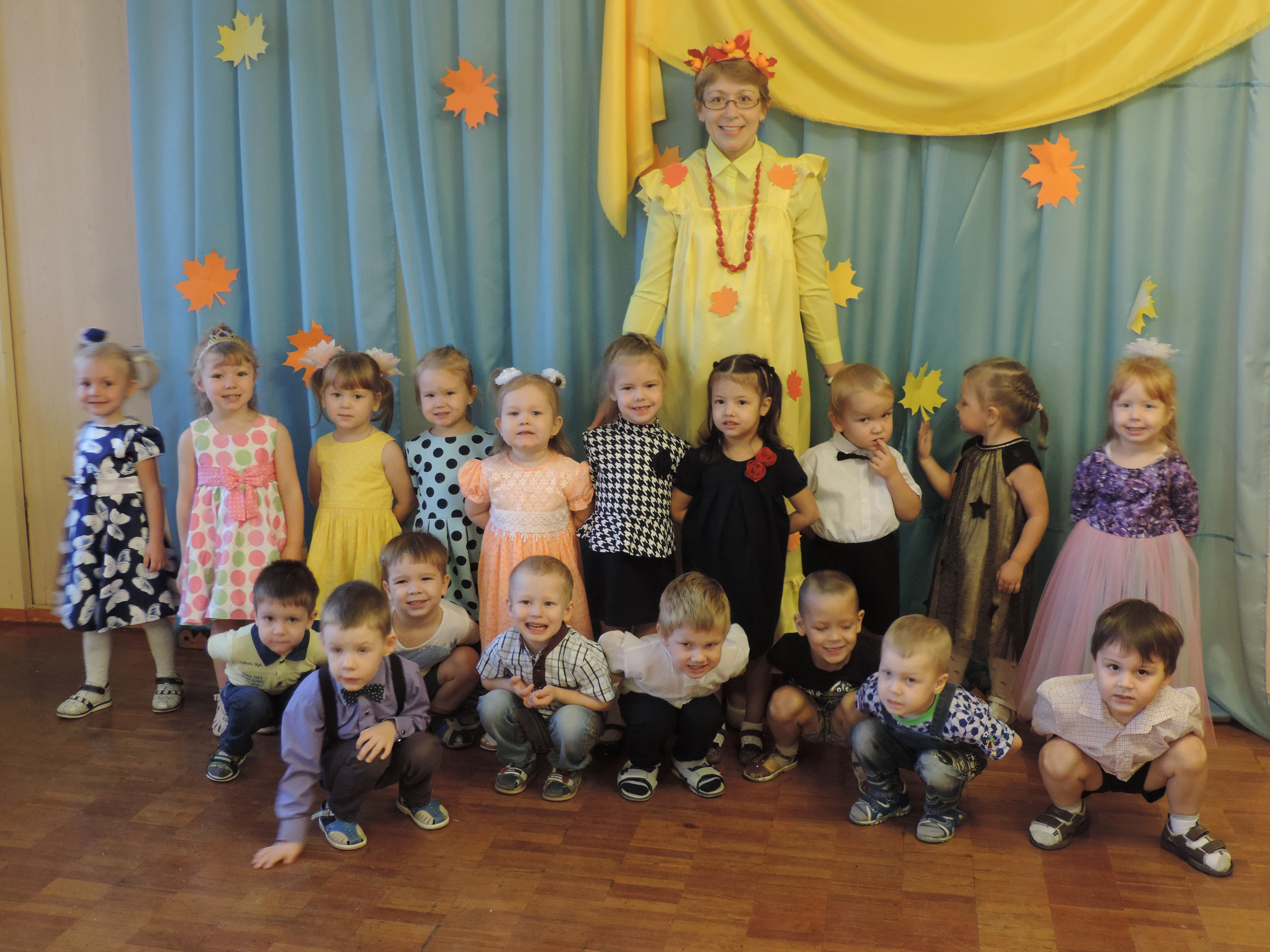 Особую благодарность хочется выразить родителям за активное участие в организации праздника - подготовку красивых осенних нарядов, заучивание с детьми стихов и песен.
