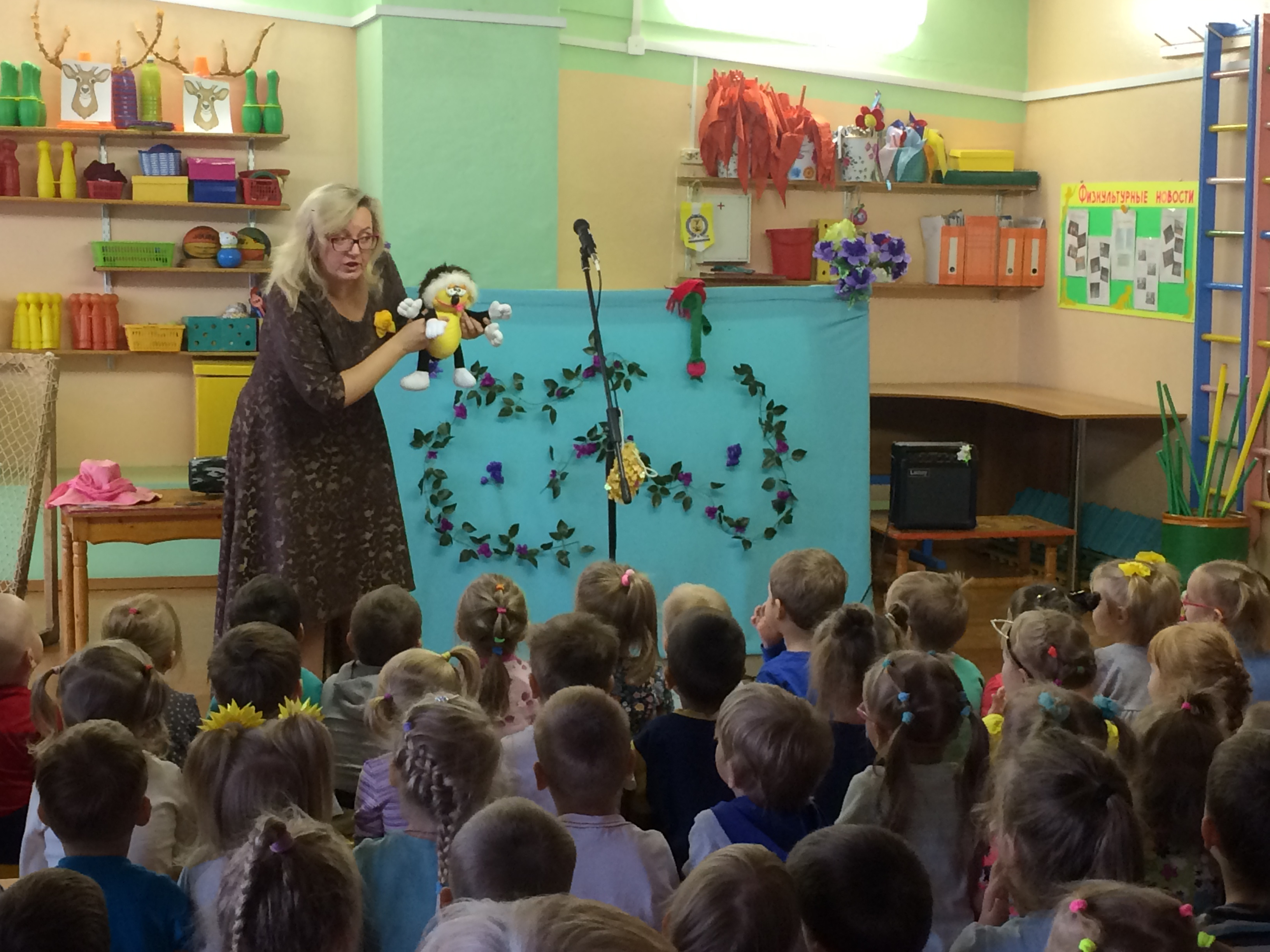 Сегодня в наш детский сад приехал мурманский автор детских песен Ирина Ярмак. Она показала нашим воспитанникам кукольное представление “Музыкальная волшебная Сказка”. Детям представилась возможность в живую услышать исполнениеи песен, и они с удовольствием подпевали автору. Наши воспитанники играли, танцевали и помогали главному герою Паучку справиться со всеми трудностями.