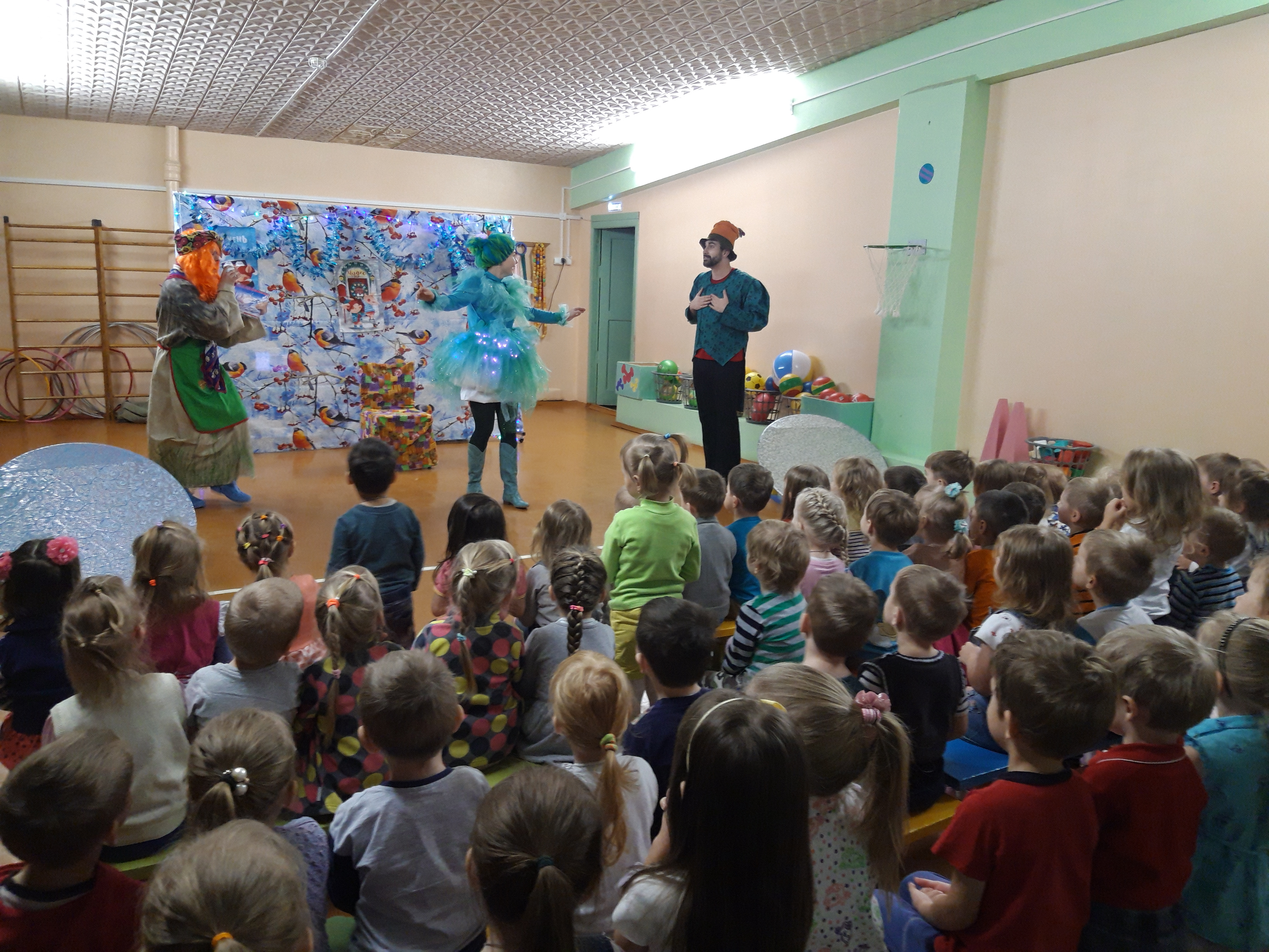 12 декабря в нашем детском саду состоялось театрализованное представление “Елка – супер стар!” с участием актеров Архангельского драматического театра, театра- студии “Сказки на Двине”. Уже полюбившиеся нашим ребятам артисты окунули их в атмосферу новогодних праздников. В представлении дети повстречались с Бабой Ягой, Дедом Морозом. А главной героиней спектакля была живая Елочка, с которой происходили необычные приключения! Представление было увлекательным и еще раз нам напомнило, что уже совсем скоро придет Новый год!