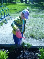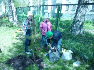 Ребята могли наблюдать и участвовать в посадке деревьев и цветов. В результате на территории детского сада появилось две сосны, а на клумбах поселились львиный зев, петуния, бархатцы, космея и другие цветы.